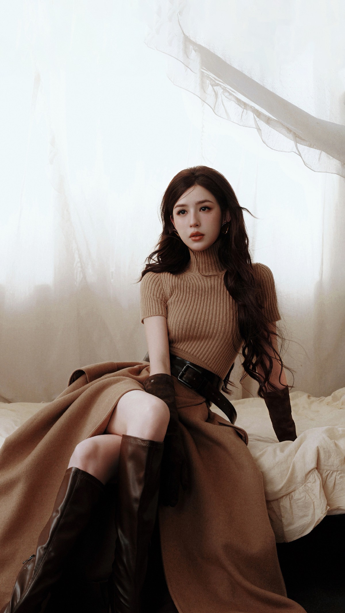 对于很多人担心的大地色显黄显旧的问题,哈妮克孜也给出了绝妙的解决方案。将贴近脸部的颜色提亮半度,让远离脸部的颜色沉下去,气色立刻就被托了起来,即便是黄皮也能轻松驾驭。哈妮克孜用她的时尚品味和独特见解,在柔与飒的平衡中,为我们呈现了一场复古优雅的时尚盛宴。