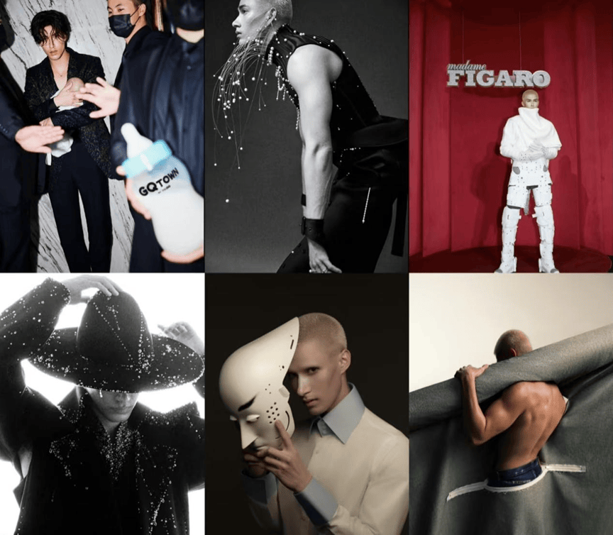 米卡就是其中的佼佼者。他和他的团队每次都会认真完成对红毯主题的理解、消化、创新,“从不打安全牌”,加上他自身对大胆、前卫造型的驾驭能力,上身透视、婚纱、奶爸、机械战甲等各种元素的红毯造型多次出圈。