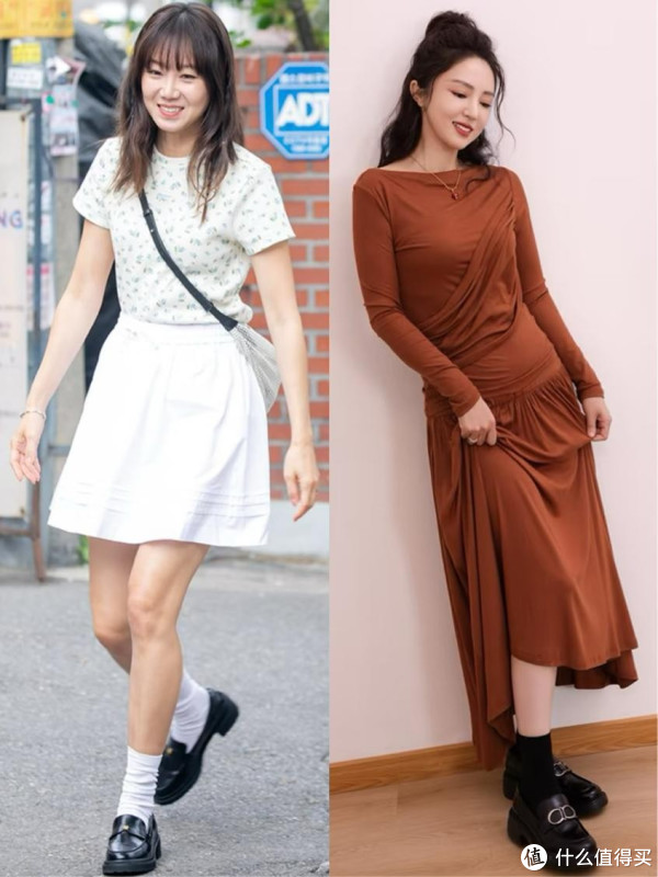 再来说说乐福鞋,这种鞋子本身是经典单品,但如果搭配不当,比如配运动裤、宽松t恤,就会显得沉闷老气,缺少活力,而且乐福鞋本身有一些学院风,成熟女性穿难免会觉得和自身的年龄不太符合。